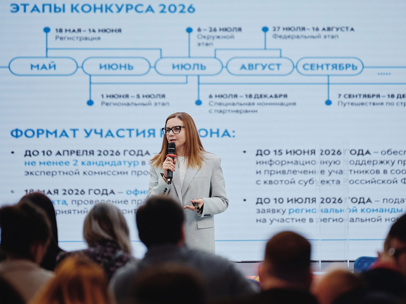 Кроме того, Олеся Тетерина поблагодарила регионы за проявленный интерес к Всероссийскому проекту «Знать. Любить. Гордиться!». В проекте смогут принять участие молодёжь и семьи из всех 89 регионов России. Участники проекта будут создавать народные маршруты и формировать карту значимых мест. Итоги будут подведены летом 2026 года, а путешествия в регионах России для победителей пройдут с сентября по декабрь. Более того, в рамках проекта реализуется и региональная номинация, которая разработана специально для проектных офисов регионов с целью поощрения представителей органов власти совместным путешествием.