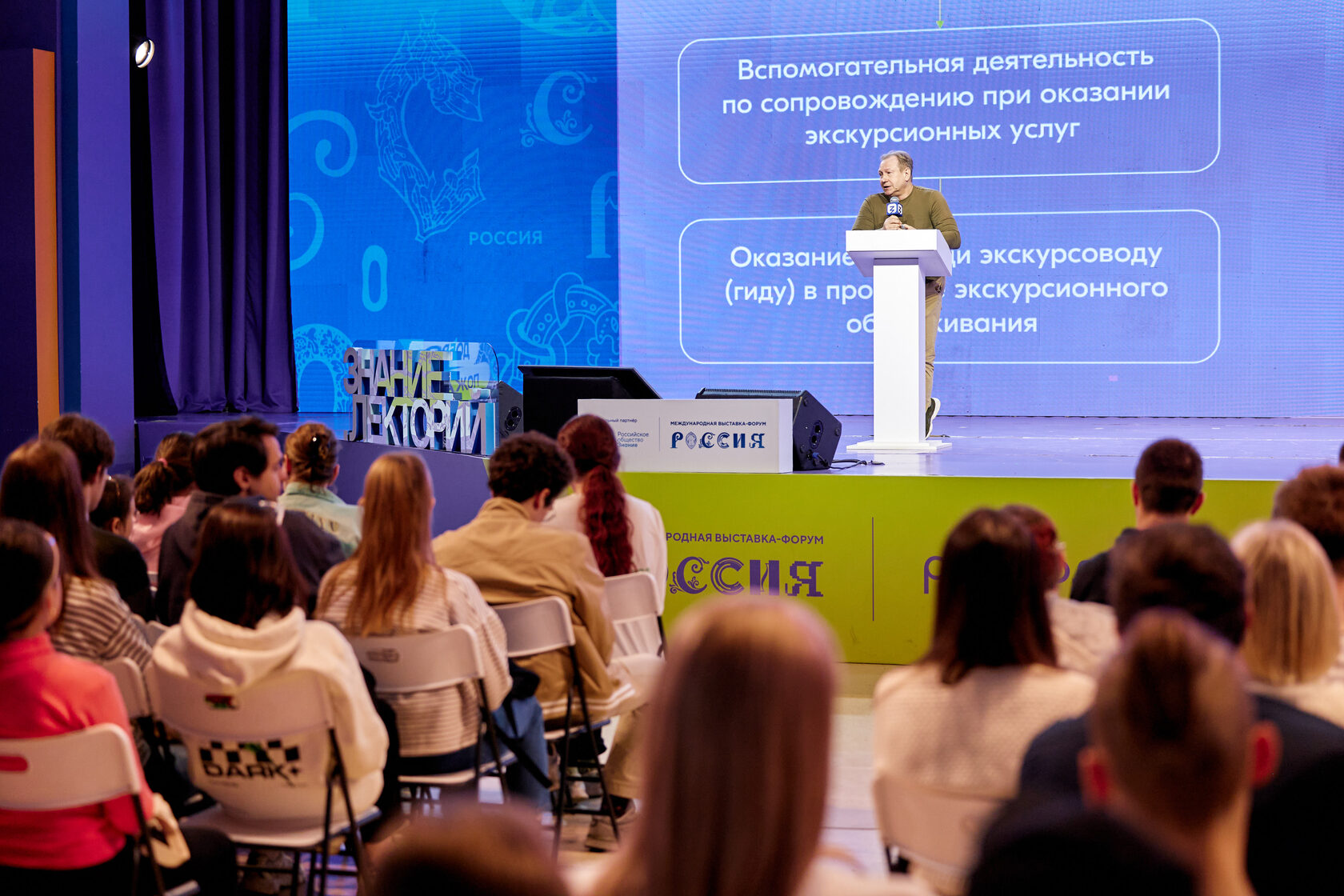 К опытным и начинающим экскурсоводам обратилась руководитель Росмолодёжи Ксения Разуваева: «В первую очередь, хочу поприветствовать родителей наших юных “проводников смыслов” и сказать большое спасибо за то, что взяли на себя ответственную миссию: знакомить гостей выставки “Россия” с главными достижениями нашей страны. А теперь это дело продолжат ваши дети, которым вы подаете личный пример, которых привлекаете к совместной работе на важном для нашего государства событии. Ребята, вы — будущее нашей страны, и я хочу вам пожелать большой удачи и успехов, а мы, взрослые, всегда будем рядом. Обещаю, что присоединюсь к вашей экскурсии в числе первых гостей, жду с нетерпением!».
