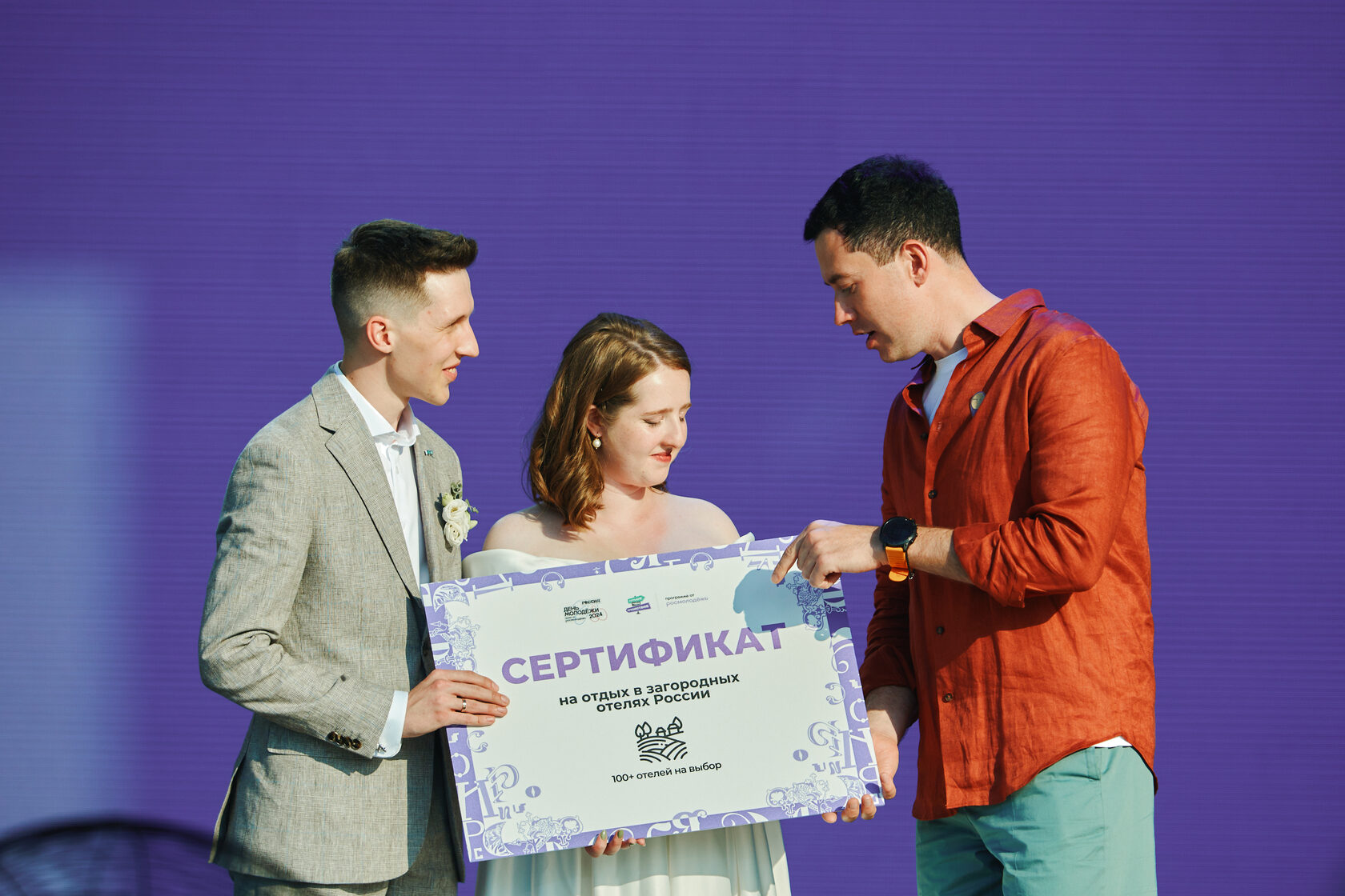 Молодоженов тепло поздравил советник руководителя Федерального агентства по делам молодёжи (Росмолодёжь) Олег Макаров, пожелав им построить крепкую семью, которая станет примером для многих. Он также вручил Ивану и Марии сертификат на путешествие.