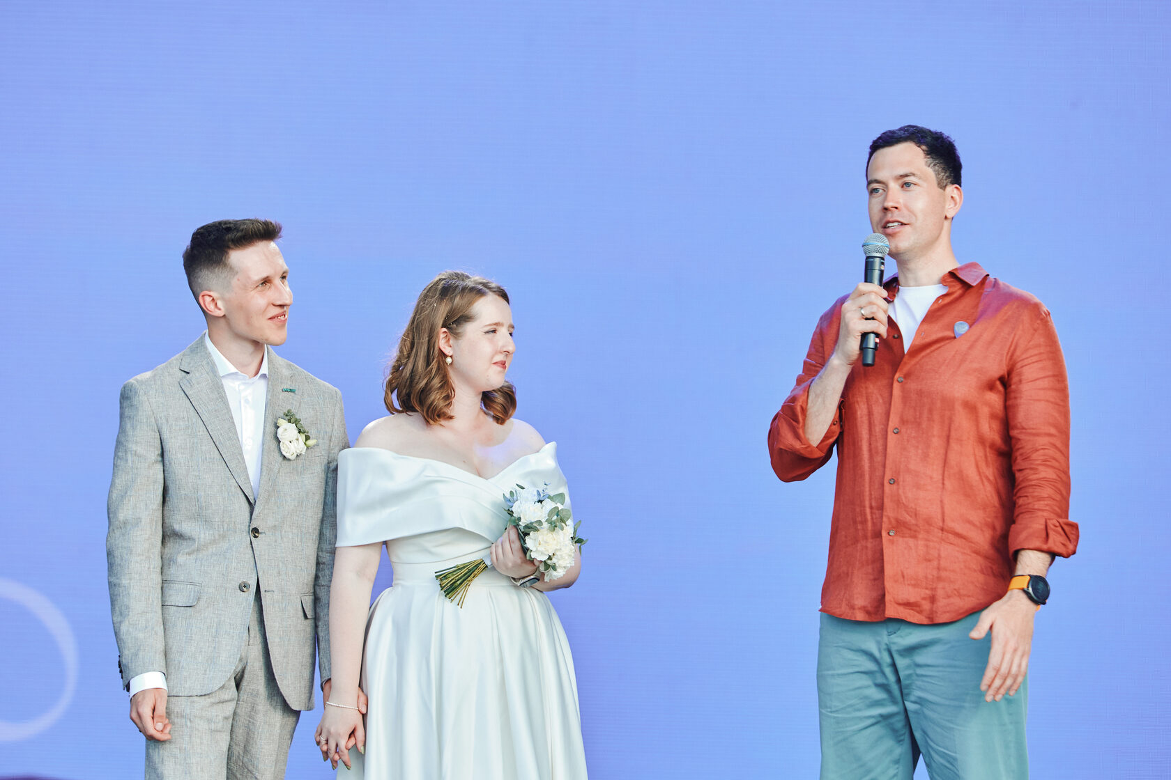 «Мне особенно приятно поздравить Марию и Ивана с днем свадьбы, ведь они являются достойным примером сообщества «Проводники смыслов», развитием и продвижением которого занимается программа Росмолодёжи «Больше, чем путешествие». Ребята стояли у истоков создания гостевого центра выставки “Россия”. У них есть опыт работы в экосистеме молодёжной политики и есть свой проект в сфере туризма. От лица Федерального агентства по делам молодёжи поздравляю с такой знаменательной датой, спасибо вам, что решили разделить этот праздник со всеми нами, нашей большой туристической семьей», – сказал Олег Макаров.