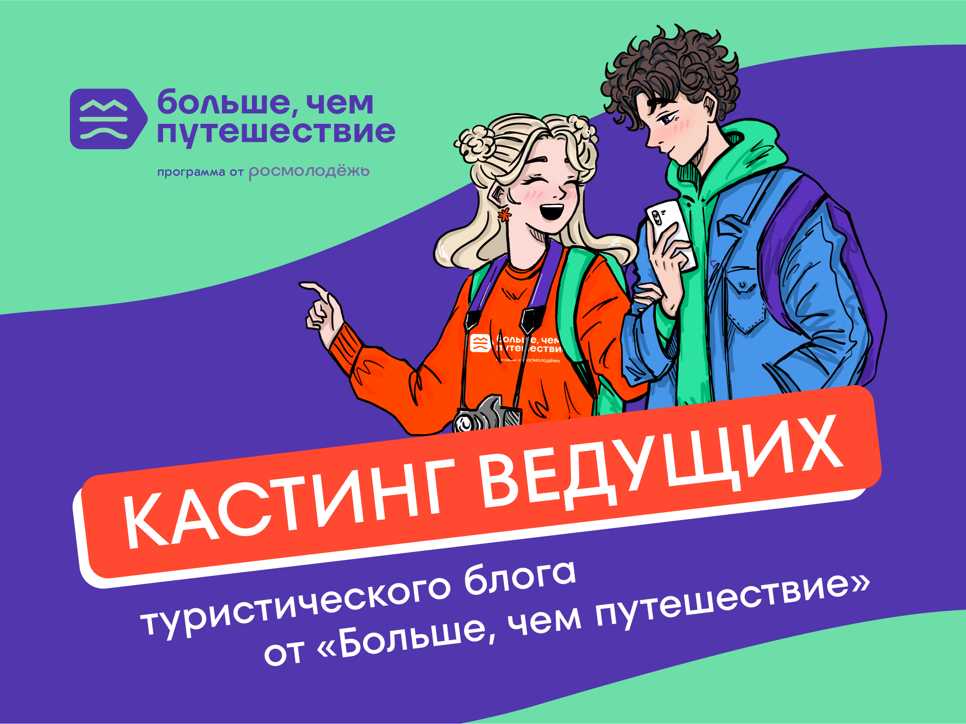 Участвуйте в отборе на кастинг ведущих туристического шоу «Афанасий и Ника путешествуют по России» от программы Росмолодёжи «Больше, чем путешествие», чтобы стать лицом яркого молодёжного проекта и внести свой вклад в продвижение полезных и познавательных поездок по нашей стране!