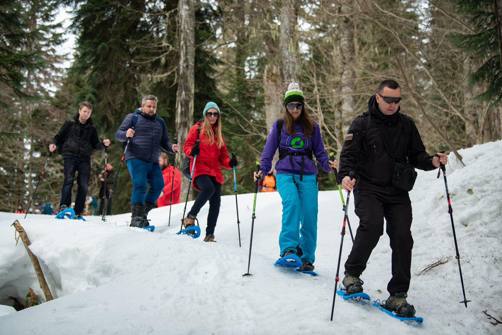 Стартовой точкой маршрута стал подъем на канатной дороге, во время которого гостям рассказали об олимпийском наследии «Сириуса» – Города молодёжи мира. Затем группа вооружилась походным снаряжением – трекинговыми палками, снегоступами – и пересекла горнолыжную трассу.