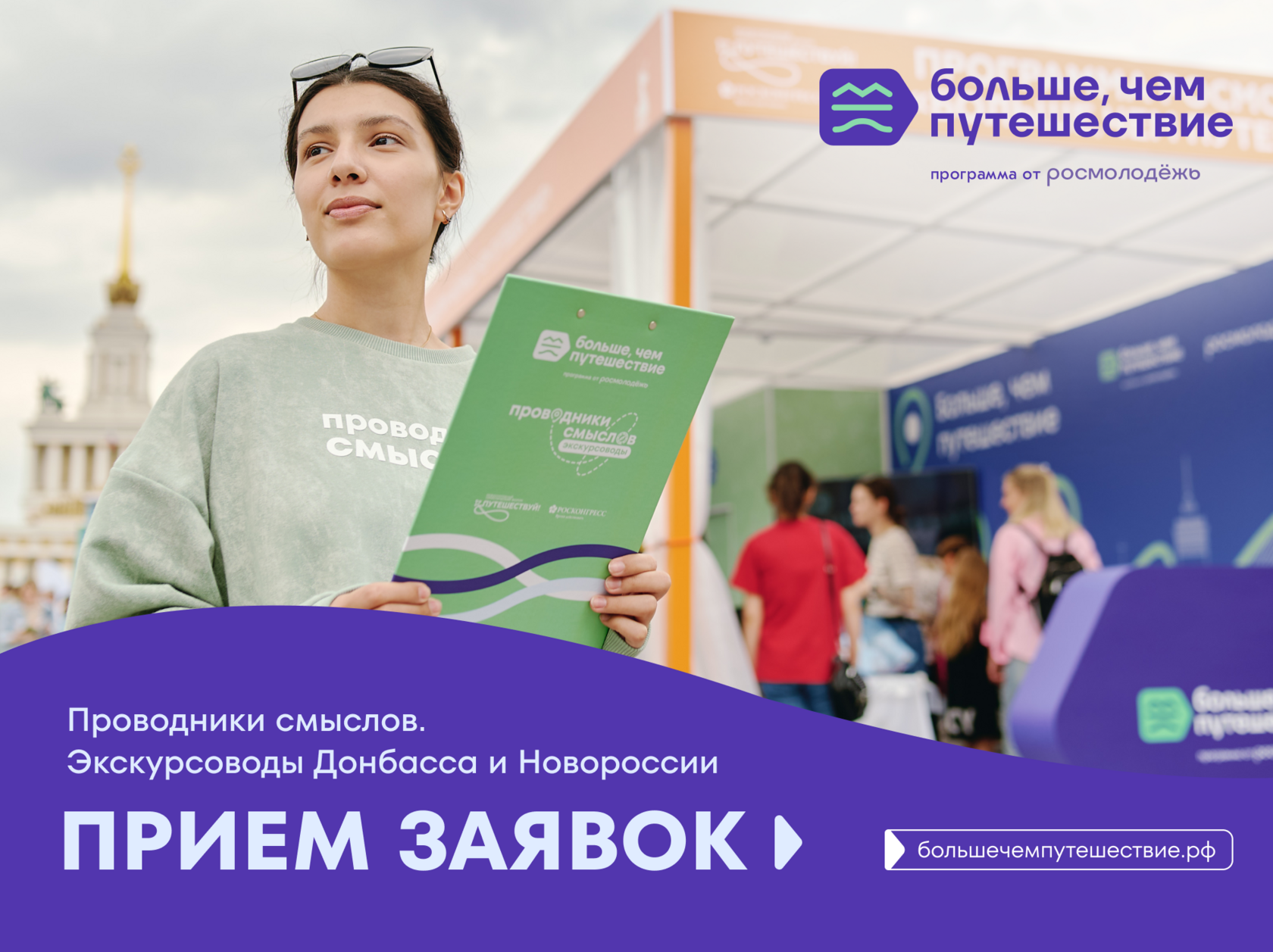 Ко Дню воссоединения ДНР, ЛНР, Запорожской и Херсонской областей с Российской Федерацией программа Росмолодёжи «Больше, чем путешествие» запустила новый проект «Проводники смыслов. Экскурсоводы Донбасса и Новороссии», направленный на сохранение исторической памяти и популяризацию культурных достижений этих регионов. Подать заявку на участие можно до 17 октября на сайте.