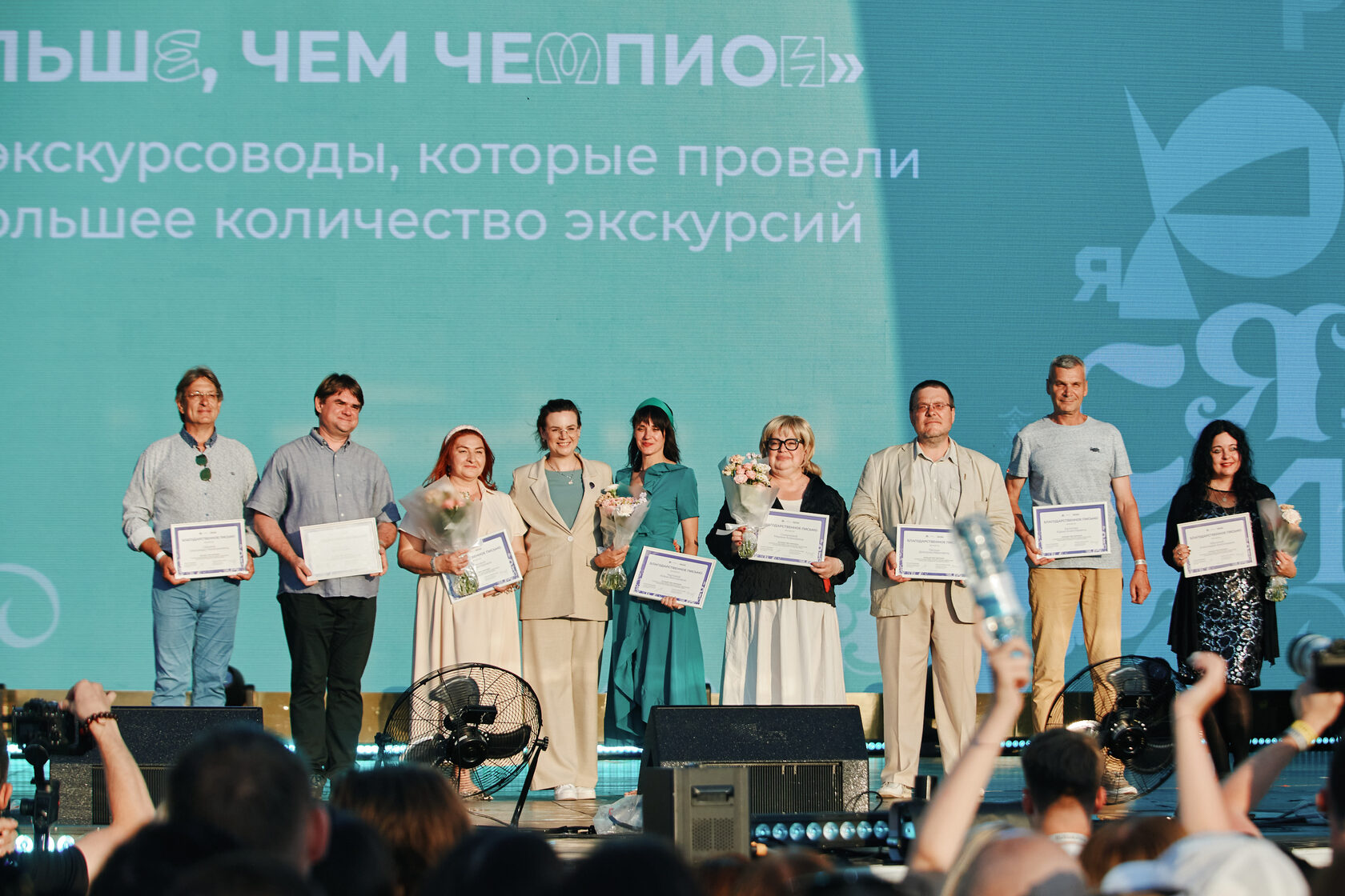 40 отличившихся экскурсоводов, волонтеров и партнерских организаций Фестиваля наградил Первый заместитель Руководителя Администрации Президента Российской Федерации Сергей Кириенко. По его словам, экскурсоводы доносят молодому поколению важные ценности, а также помогают узнать о возможностях для развития в современной России.