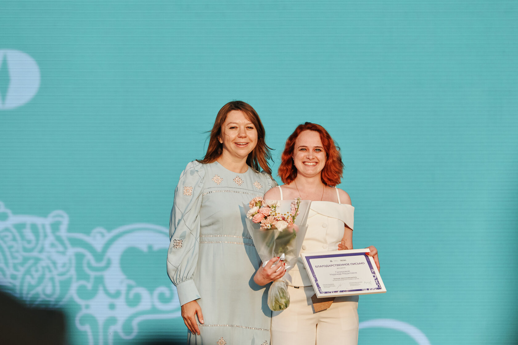 Одной из награжденных стала Мария Гольцман, у которой в День молодёжи на выставке состоялась свадьба. Мария и ее муж Иван Ветров – сотрудники гостевого центра выставки “Россия”. Со знаменательной датой молодожёнов поздравил Олег Макаров. Он также вручил Ивану и Марии сертификат на путешествие.